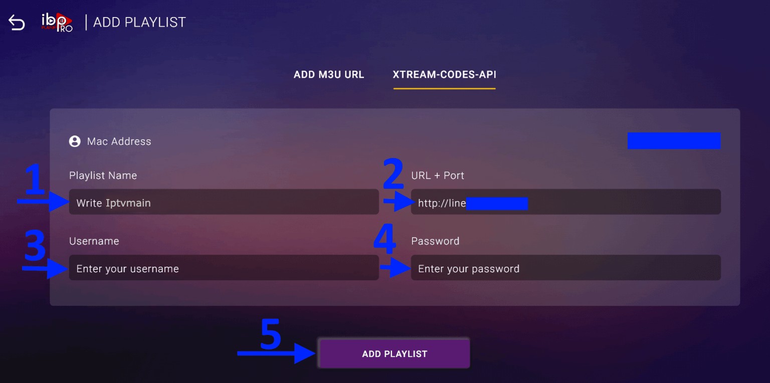 - If you prefer to use an m3u link or Xtream codes for streaming, enter the link and the details provided to you via email into the Ibo Player Pro app. This option is for users who have received their playlist link and credentials from IPTVMain.