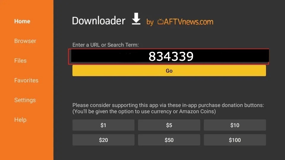 10. Now, simply type in the following Downloader code on this popup window with the onscreen keyboard: 834339